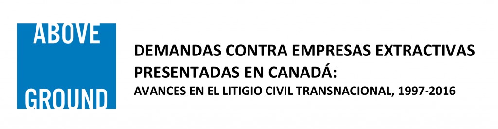 Se han presentado ante tribunales canadienses un total de ocho demandas sobre abusos ambientales o a los derechos humanos en relación a las operaciones de empresas extractivas canadienses en el exterior. Si bien ninguna de las partes demandantes extranjeras ha tenido éxito hasta la fecha en un litigio de este tipo, existen cinco casos interpuestos por demandantes extranjeros ante los tribunales canadienses. Dos de estos, García et al v. Tahoe Resources y Araya, y Gize v. Nevsun Resources Ltd. se presentaron en el 2014. Las tres demandas restantes se antepusieron contra Hudbay Minerals en el 2010 y 2011. Luego de haberse presentado y resuelto una serie de recursos en estas tres acciones, se pasará a decidir sobre el fondo de la controversia.