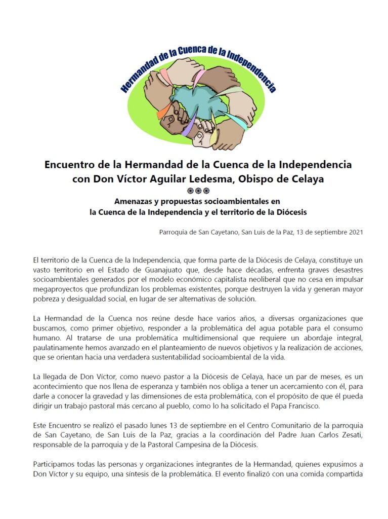 Comunicado | Encuentro de la Hermandad de la Cuenca de la Independencia con Don Víctor Aguilar Ledesma, Obispo de Celaya