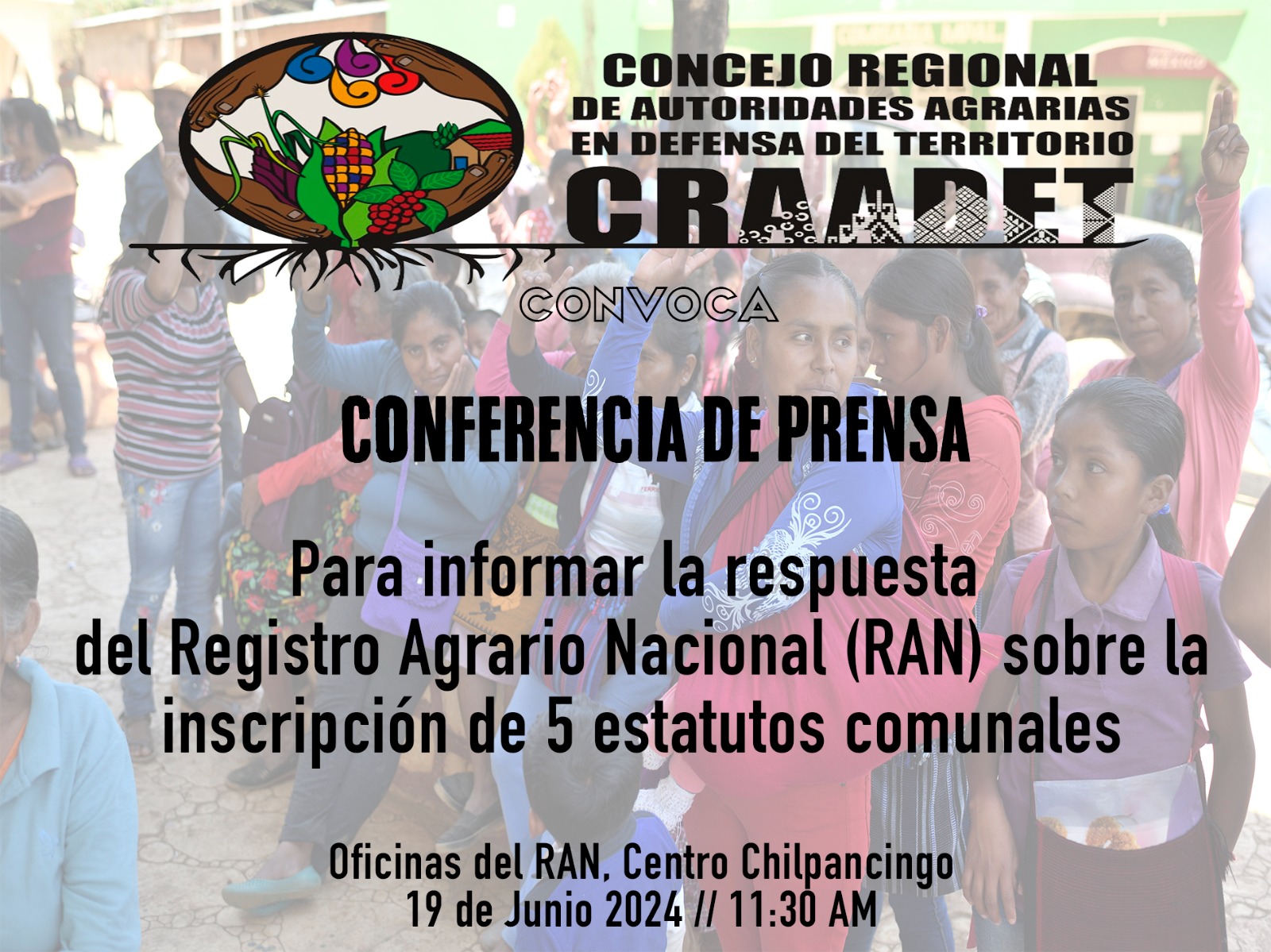 Invitación Conferencia de Prensa -CRAADET- «Información respuesta del RAN sobre inscripción de cinco estatutos comunales»